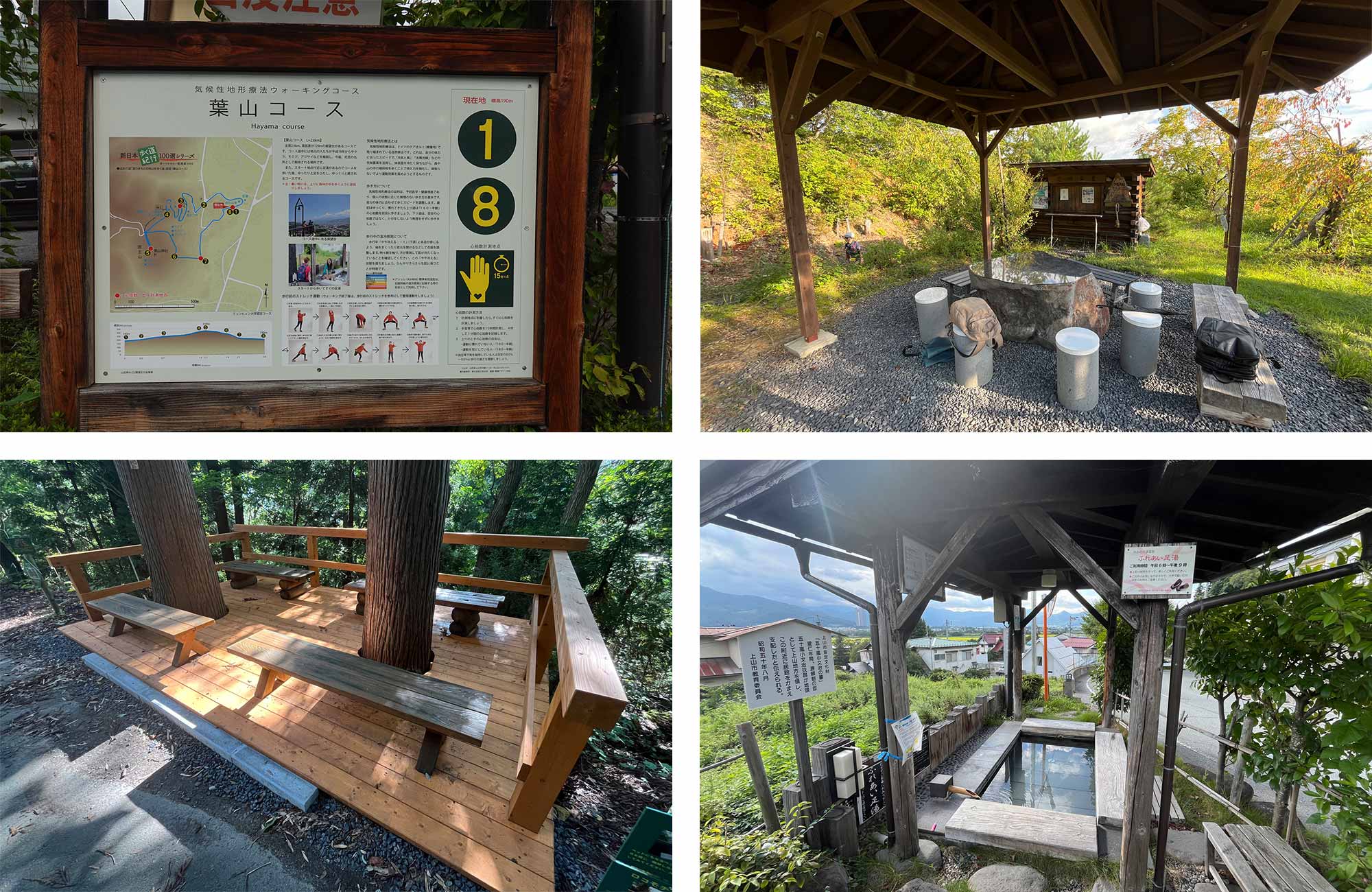 ガイドを務めるのは、上山市温泉クアオルト協議会会長であり、旅館「彩花亭 時代屋」を経営する冨士重人さん。「葉山コース」は、市を中心に旅館組合やボランティアが協力し、20年以上かけて整備。木を伐採して自律神経の活性化に配慮した木漏れ日の道をつくるなど、様々な取り組みが行われてきたそうです。道中にある休憩所や足湯は、地元の企業や団体からの寄贈によるものが多く、地域の人々の力でコースが磨かれてきたことが伝わってきます。
