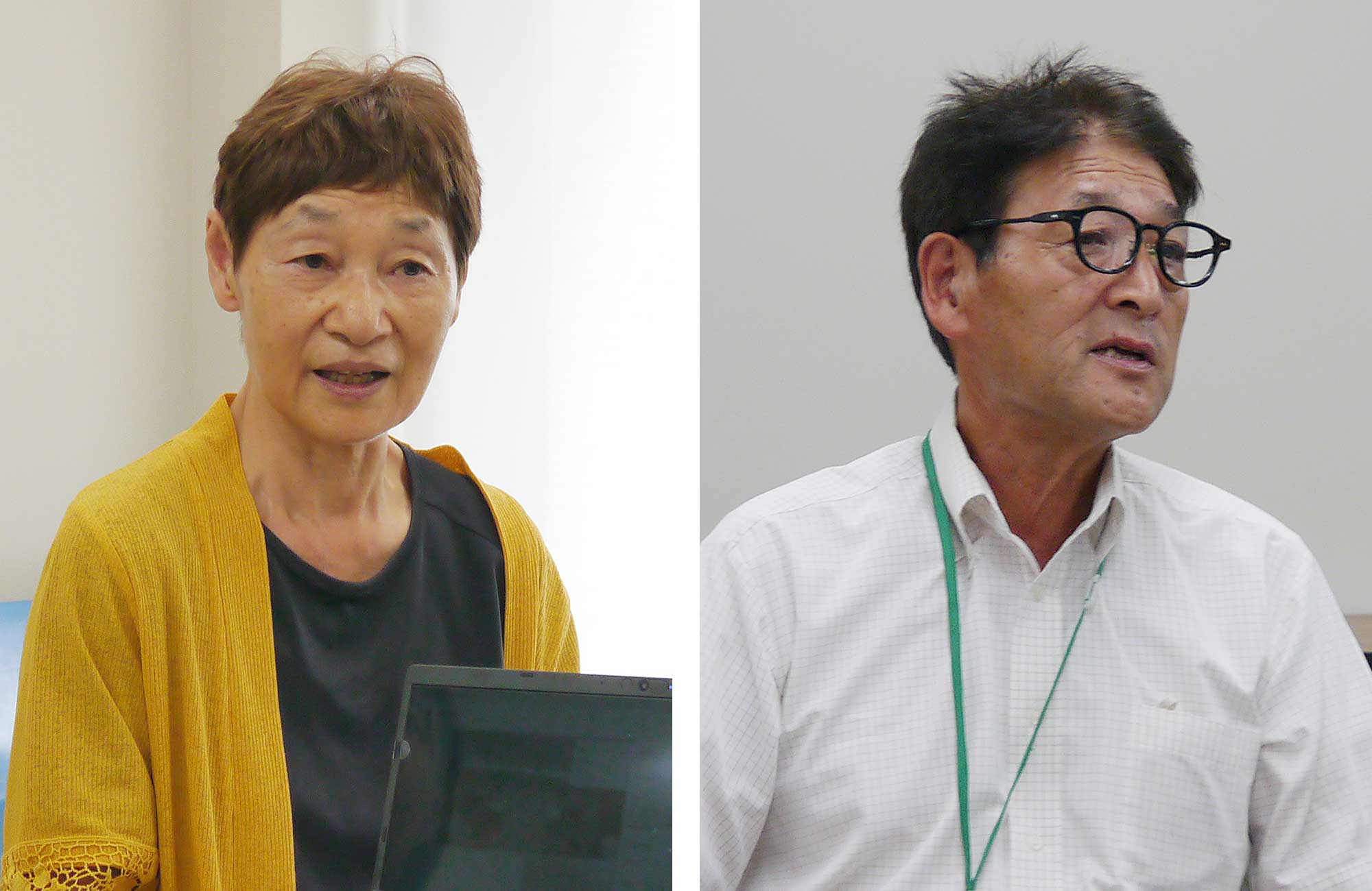 「人との交流が一番楽しく嬉しい』と語る健康マイスターの小野塚とし子さん(左)と、NPO法人蔵王テラポイト協会理事長で、気候と地形の特性を活用した「気候性地形療法」ウォーキングガイドを務める渡邉健一さん(右)