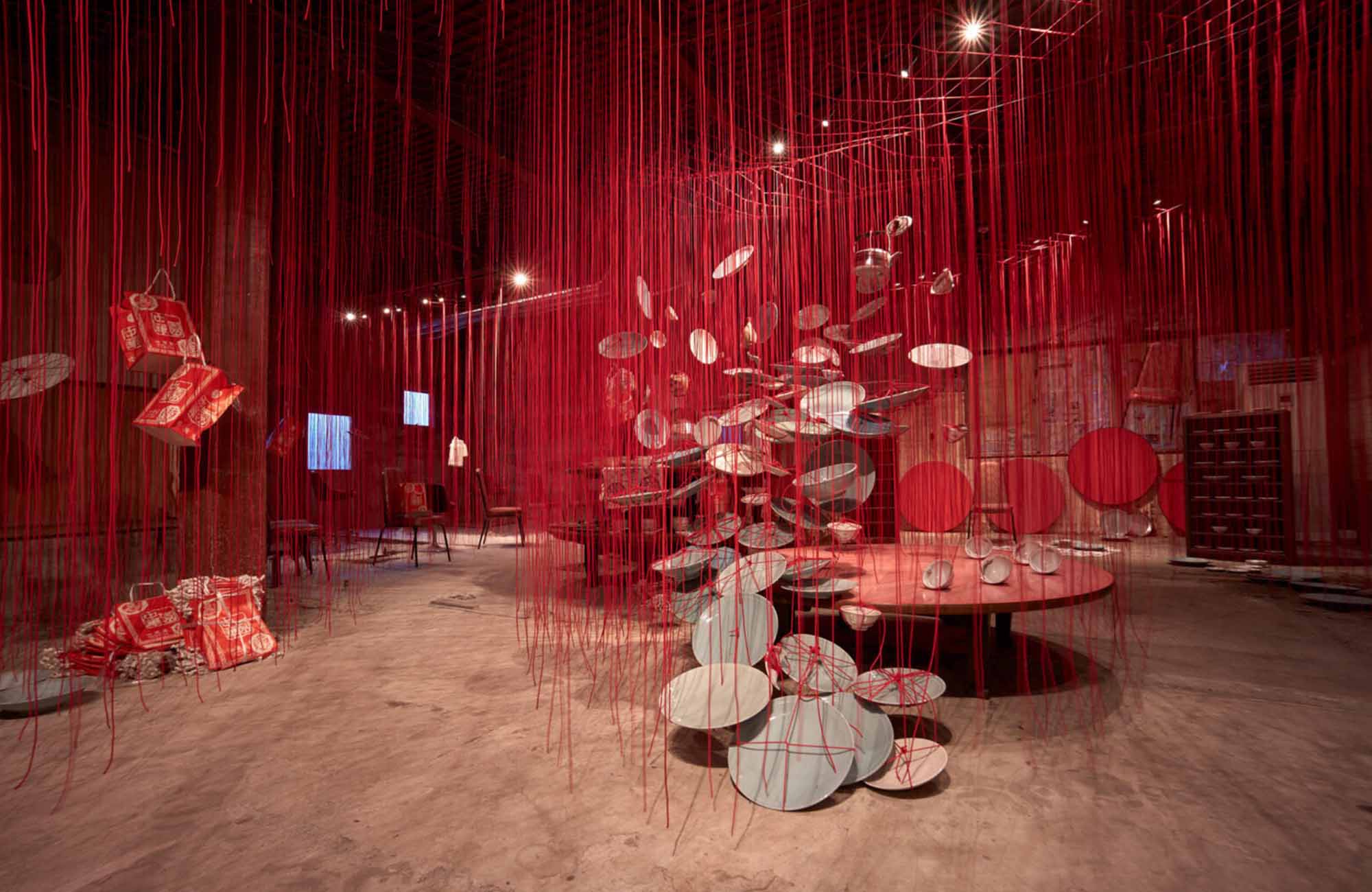 2022年に混浴温泉世界実行委員会主催で開催された塩田千春展『巡る記憶』の様子。