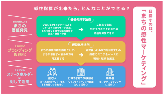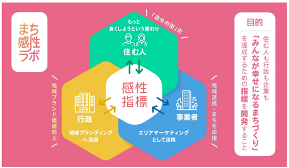 このプロジェクトでは、これまで言葉にできなかった「まちに対して人が抱く感覚」を、感性指標という形で可視化することを目指します。