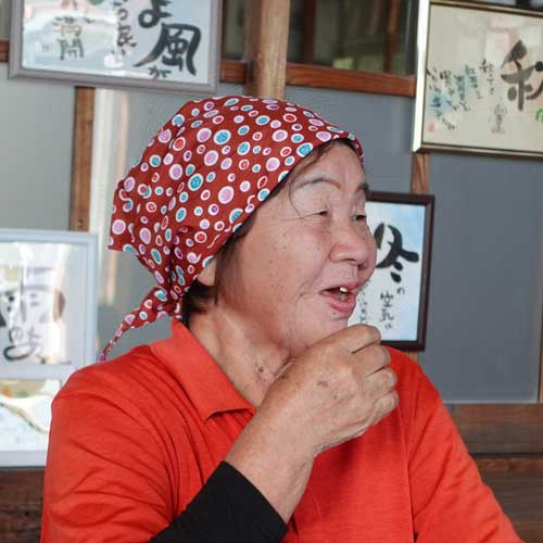 長橋 ちづ江(ながはし ちづえ)さん南島原食堂で働く“お母さん”の一人。接客や調理を担当し、明るい人柄と気さくなおしゃべりでお客さんに元気を届けている。