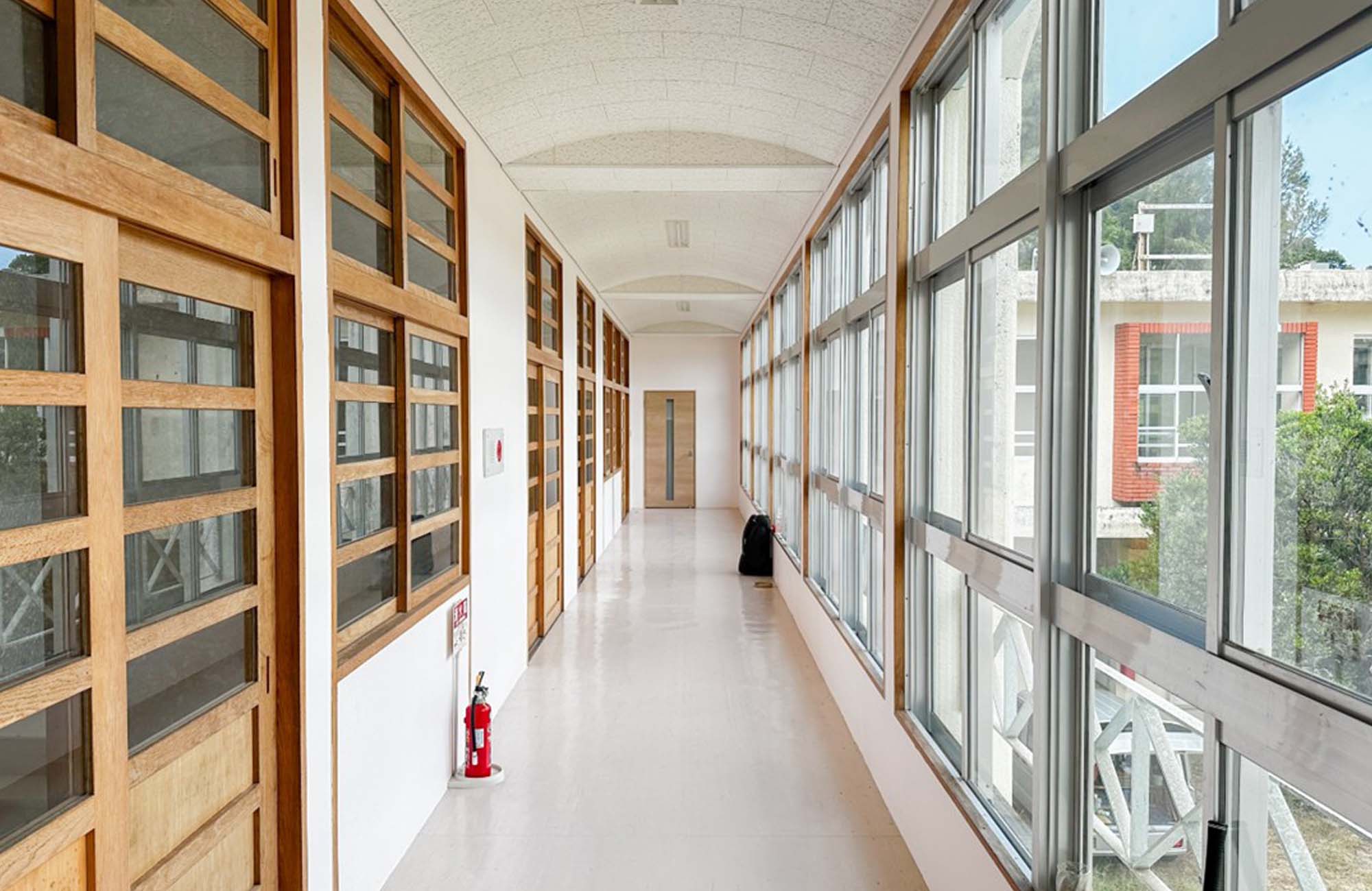その図書室の扉を開けて驚いた。海側は一面がガラス窓で、まるでこの場所が海の上にあるかのように錯覚するほど。現在は使われていない場所らしく空っぽの本棚が残るだけだったが、かつてはこの場所で子どもたちが本を読み、海を見つめていたのだと想像すると、改めて沖縄の海が、食だけでなく、人々の心にも多くの恵みをもたらしてきたことに気付かされる。