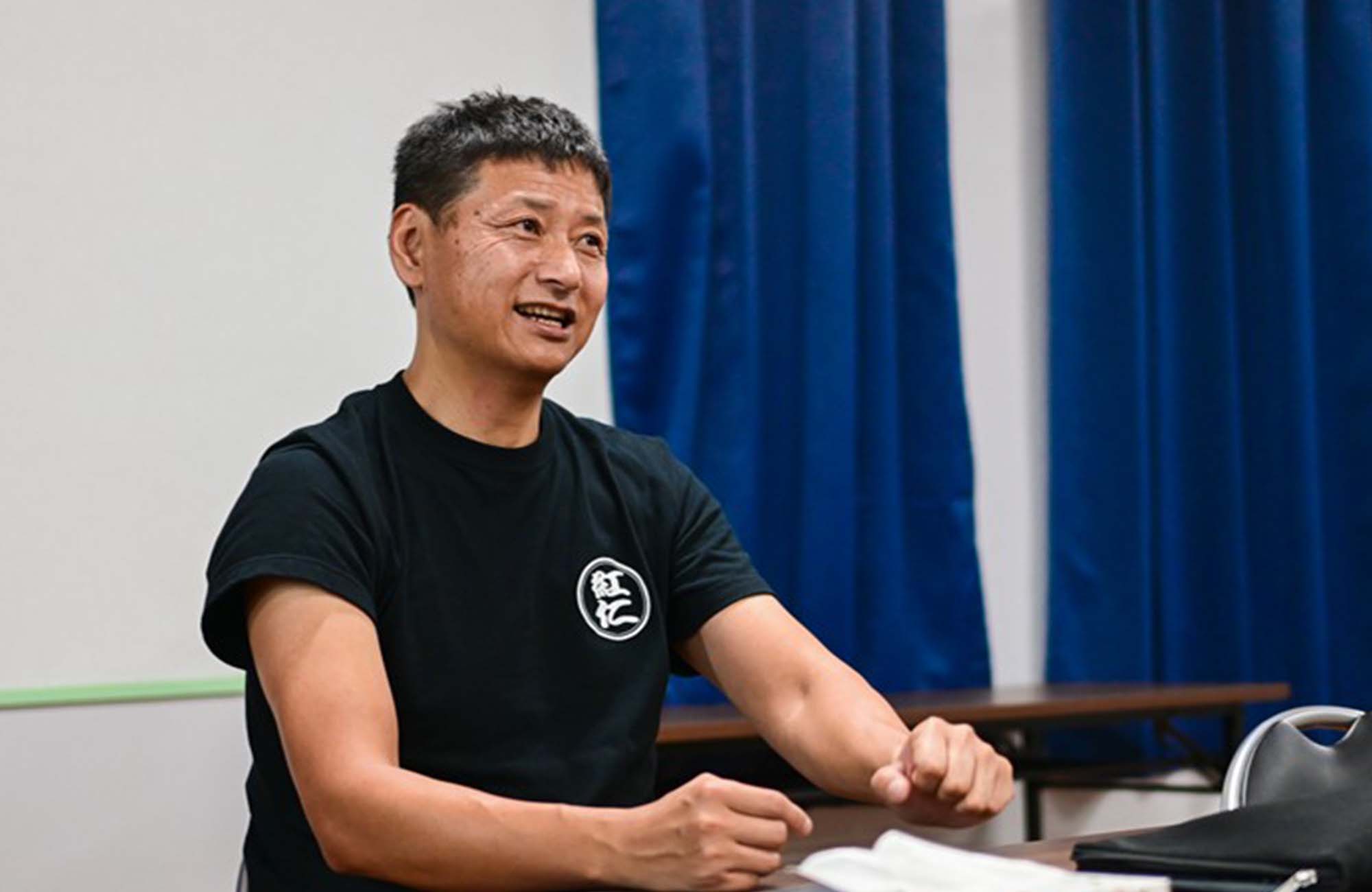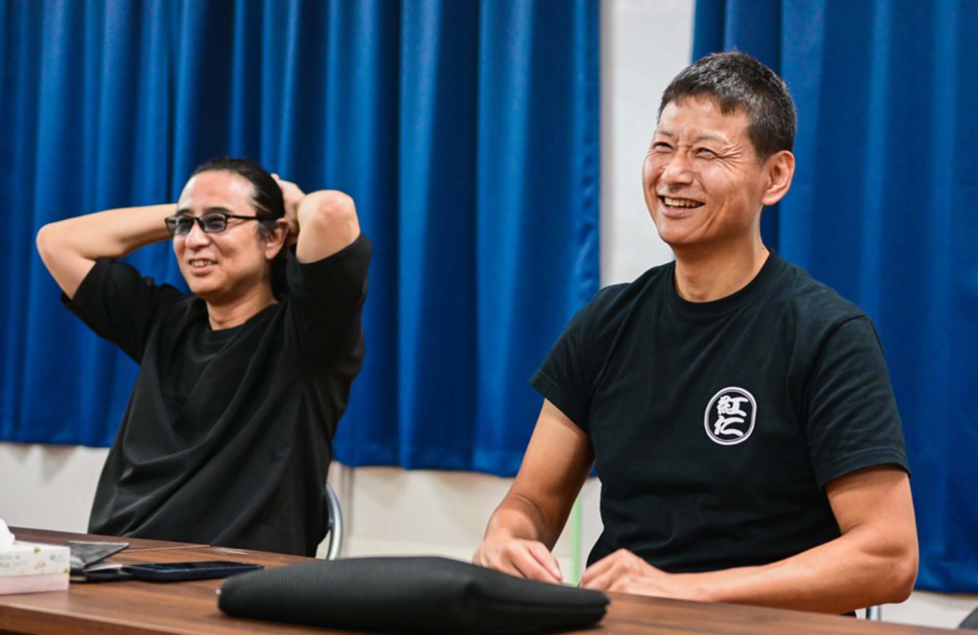 「どうぞどうぞ。お待ちしておりました」。編集部を和やかに迎え入れてくれたのは、紅仁とNTTアクアの皆さん。紅仁代表の後藤徳彦さんをはじめ皆さん、気持ちよく日焼けした肌に黒いTシャツ姿で、一見すると、どの方がどちらの会社なのか見分けがつかない。NTTアクア営業戦略部長の野瀬英則さんも、「紅仁」のロゴマークが描かれたTシャツを着ており、「我々に垣根はありませんから」と白い歯をこぼす。